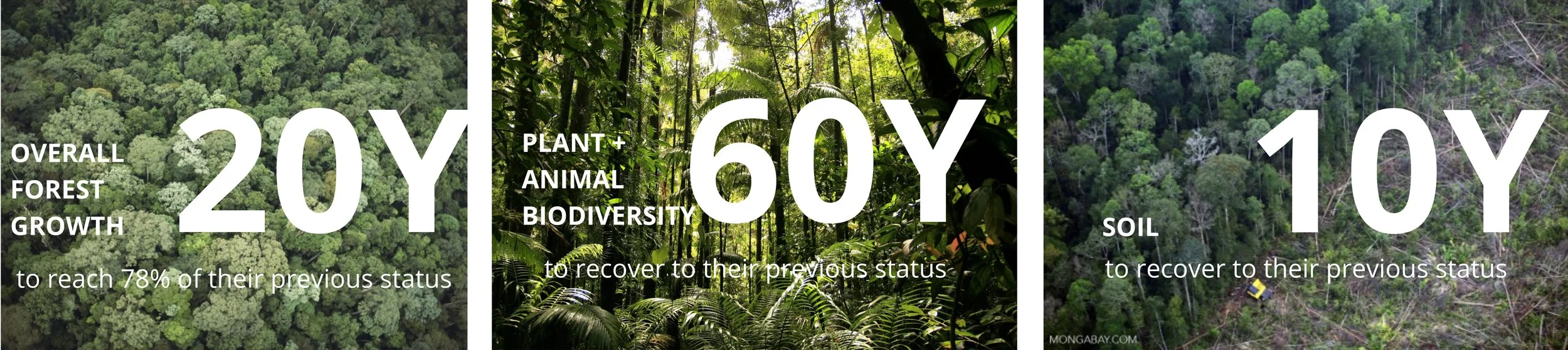 The amount of time taken for forest land to recover after deforestation⁴¹.