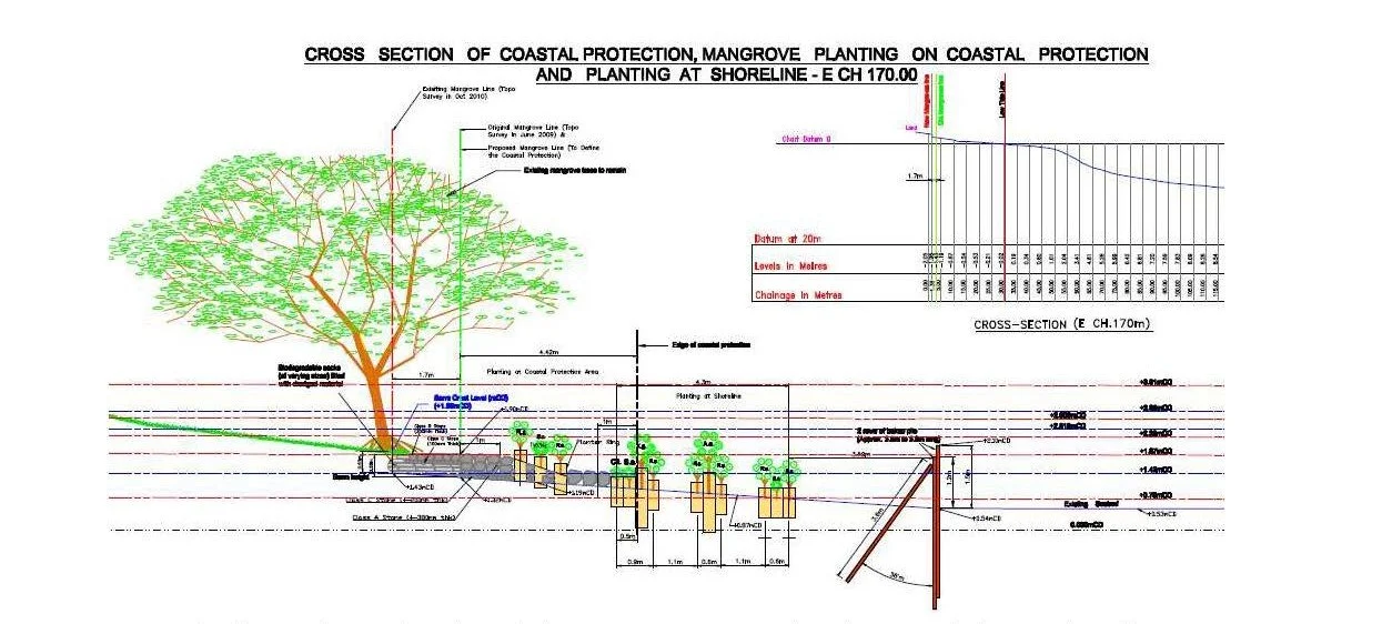 Cross Section of Coastal Mangrove Planting on Coastal Protection and Planting at Shoreline ¹¹⁴